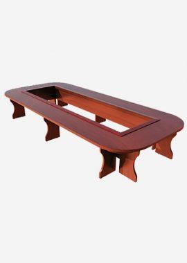 -Bàn họp quây với mặt bàn hình chữ nhật. Bốn góc bàn vê tròn, phần giữa rỗng 1000m, tạo không gian đặt các chậu hoa trang trí bên trong.