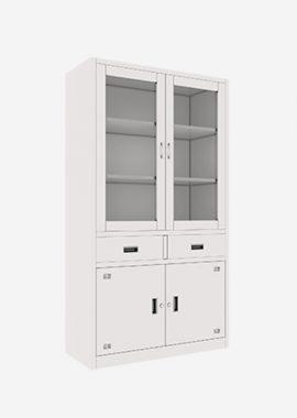 - Tủ gồm 2 khoang: Khoang trên có 02 cánh kính mở sử dụng chung 1 khóa, phía trong bao gồm 02 đợt di động.