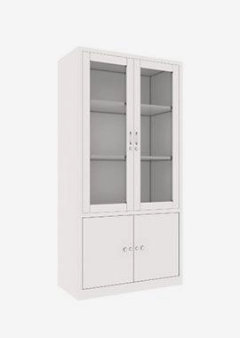 - Ngăn trên của tủ có 02 cánh kính mở, khóa đơn, có 2 đợt di động.