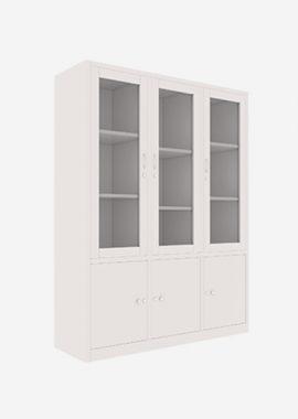 - Tủ bao gồm 2 khoang. Khoang trên có có 3 cánh kính mở sử dụng khóa riêng biệt, bên trong mỗi ngăn có 2 đợt di động giúp lưu trữ tài liệu linh hoạt.